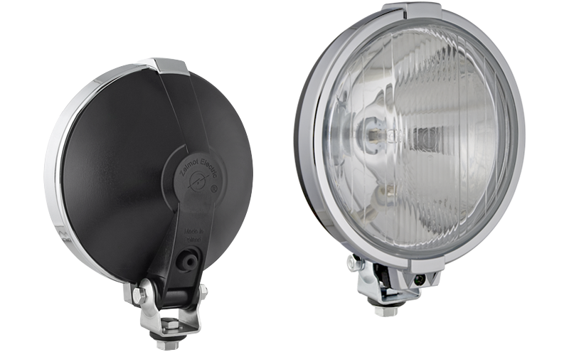 Halogén távolsági fényszoró krómozott kerettel és helyzetjelző lámpával