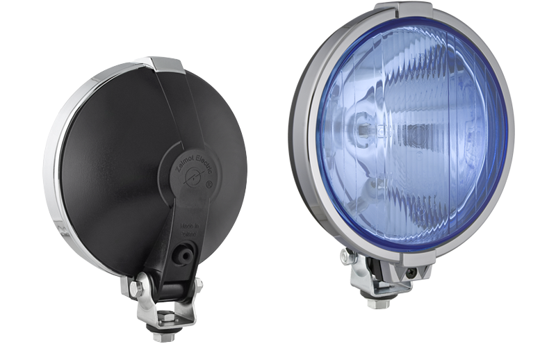 Halogén távolsági fényszoró krómozott kerettel és helyzetjelző lámpával - kék